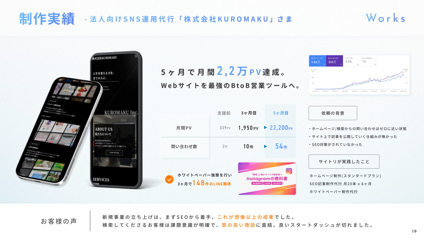 問い合わせ数2.5倍,売上20倍