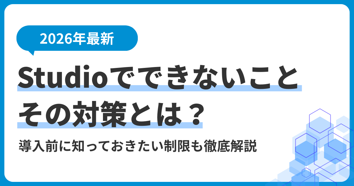 この記事では、Studioの主な制限事項と、それをカバーするための実践的な対策まで詳しく解説します。
